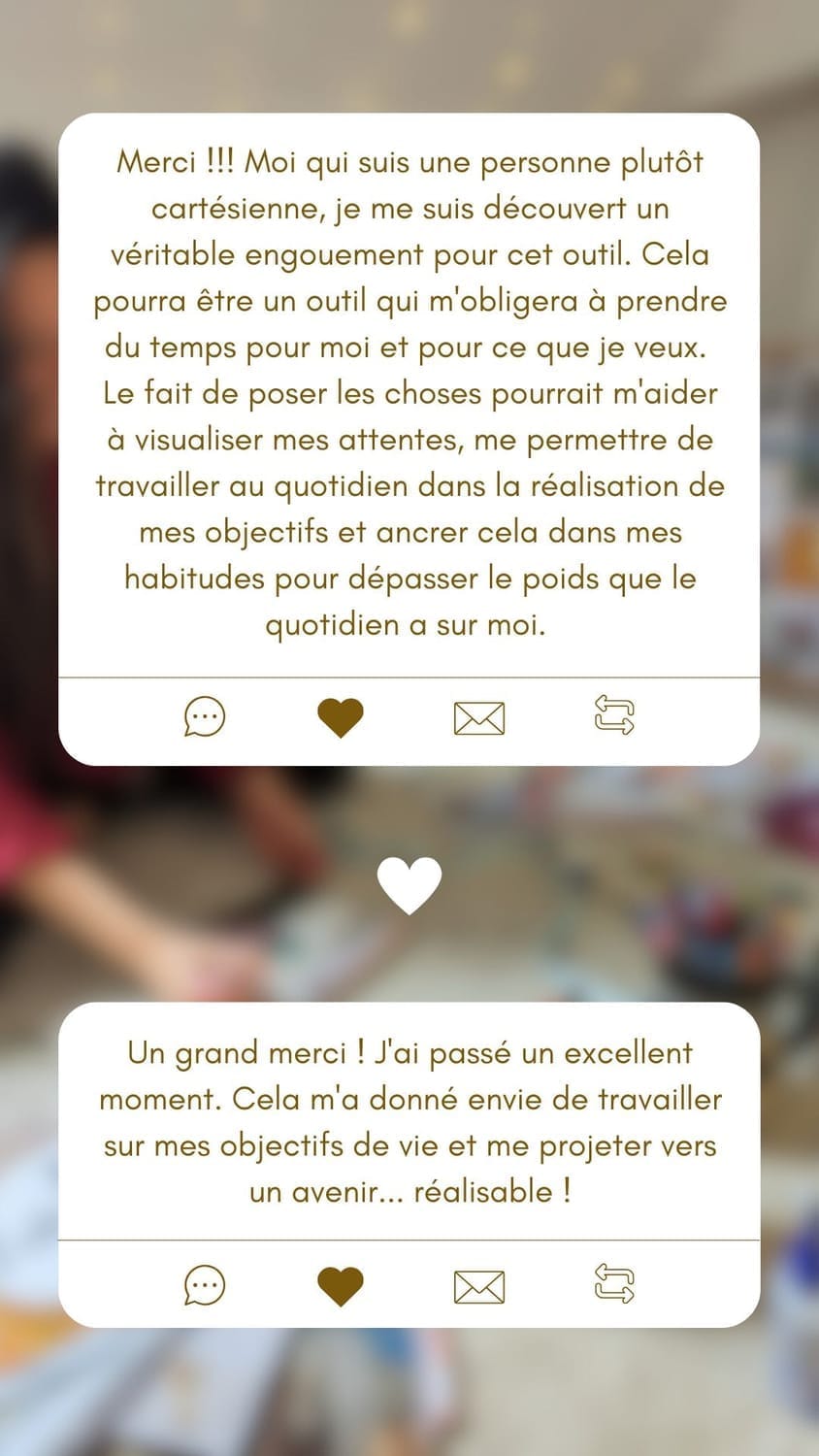 Aujourd’hui, j’ai déjà accompagné des femmes en transition, des entrepreneures et des créatives à poser une vision claire qui les guide toute l’année.